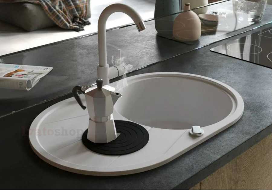 Jedinečný drez Aquasanita Clarus 780.0E je jedným z mála okrúhlych granitových drezov s odkvapkávačom. Drez si svoju obľubu získal predovšetkým u zákazníkov, ktorí majú blízko k rustikálnemu štýlu kuchyne alebo k štýlu Provence.