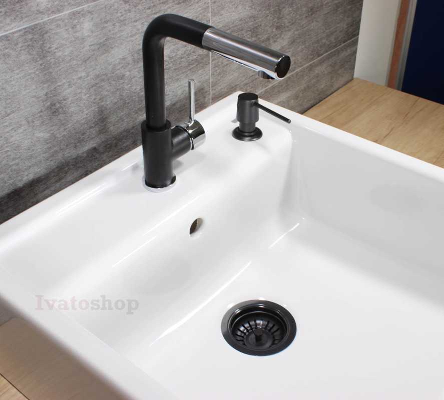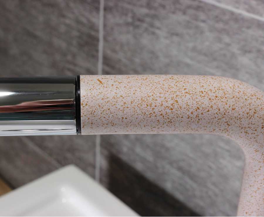 Povrch drezovej batérie je vyrobený z drvenej žuly. Čierna granitová batéria, ale aj piesková, biela alebo šedá skvele doplní granitový drez v podobných odtieňoch. Samozrejme je možné túto pákovú batériu použiť aj pri nerezových drezoch, kde ozvláštni celkový dojem umývacieho centra.