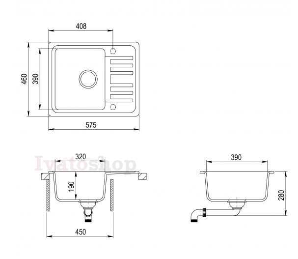 Vanička je štandardných rozmerov, preto pri umývaní riadu nie ste priestorovo limitovaní. Skrátená je iba odkladacia plocha. Hĺbka vaničky 19 cm je dostatočná na bežné umývanie veľkých plechov na pečenie alebo objemných hrncov. Rovnako praktická je aj odkvapová časť drezu. Drez má už vytvorené otvory na inštaláciu kuchynskej batérie a excentrického ovládania.