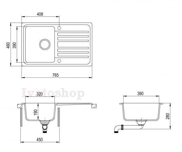 Klasický granitový kuchyňský dřez s odkapem od společnosti Aquasanita Notus 765.0E v rozměru 765 x 460 mm je ideálním řešením pro každou kuchyň. Hloubka dřezu je dostatečná na pohodlné umytí i větších nádob, klasická odkládací plocha svým designem a rozměry poskytne dostatečný komfort při osušení umytého nádobí.