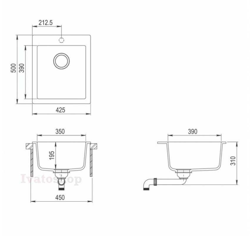 Na pohľad menší drez, poskytuje aj napriek tomu, dostatok priestoru pre pohodlné umývanie riadu. Zadná plocha drezu umožňuje inštaláciu kuchynskej batérie do drezu (otvor je už vytvorený). Drez je určený do skrinky od 45 cm.