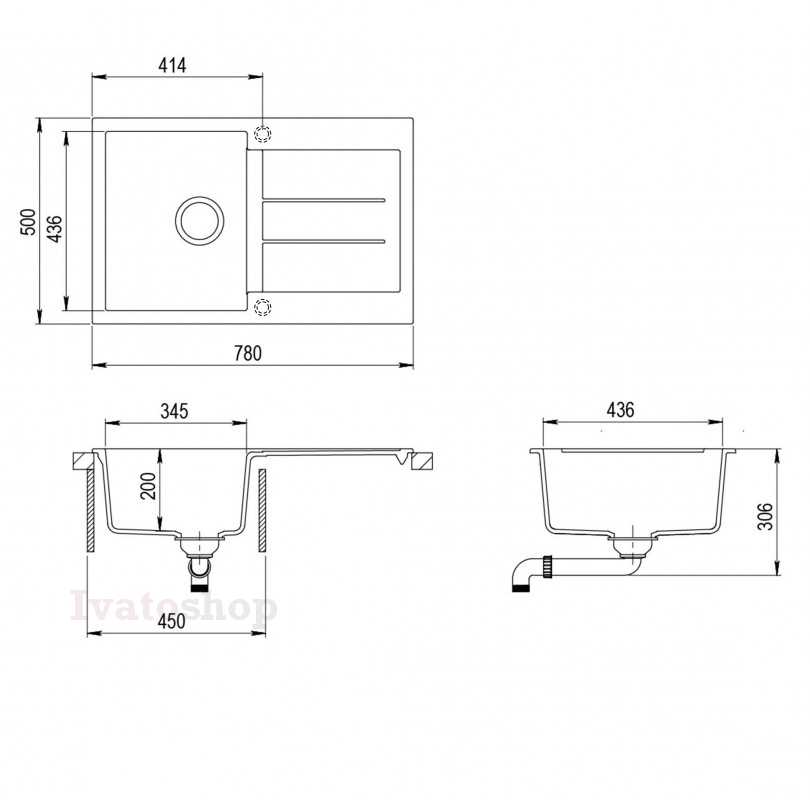 Tesa 780.0E dodávaný spoločnosťou Aquasanita v ideálnom rozmere 50 x 78 cm a hĺbkou vaničky 20 cm. Hĺbka vaničky je dostatočná na bežné umývanie veľkých plechov na pečenie alebo objemných hrncov. Rovnako praktická je aj odkvapová časť drezu. Do drezu je možné vyvŕtať otvory na batériu, excentrické ovládanie alebo na dávkovač saponátu.