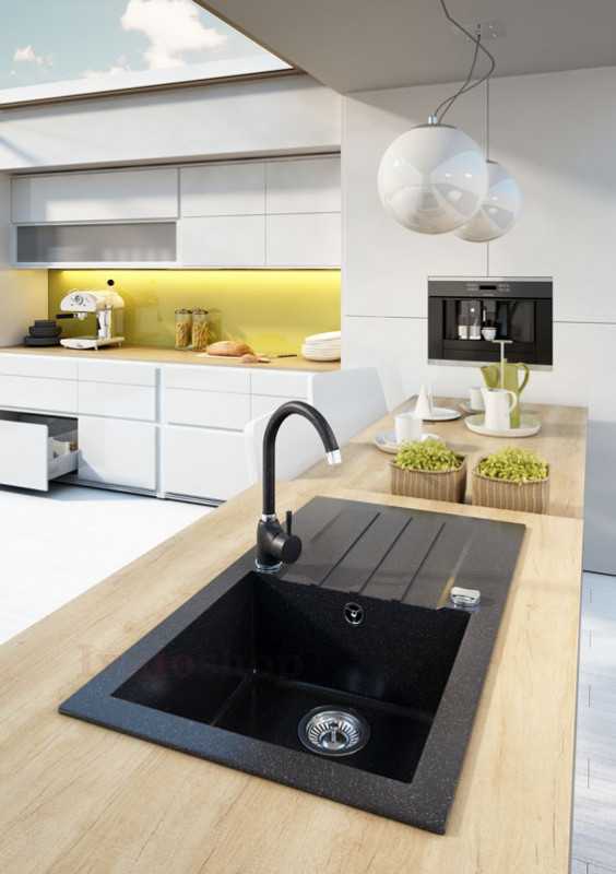 • granitový drez s praktickým odkvapkávačom as excentrickým ovládaním