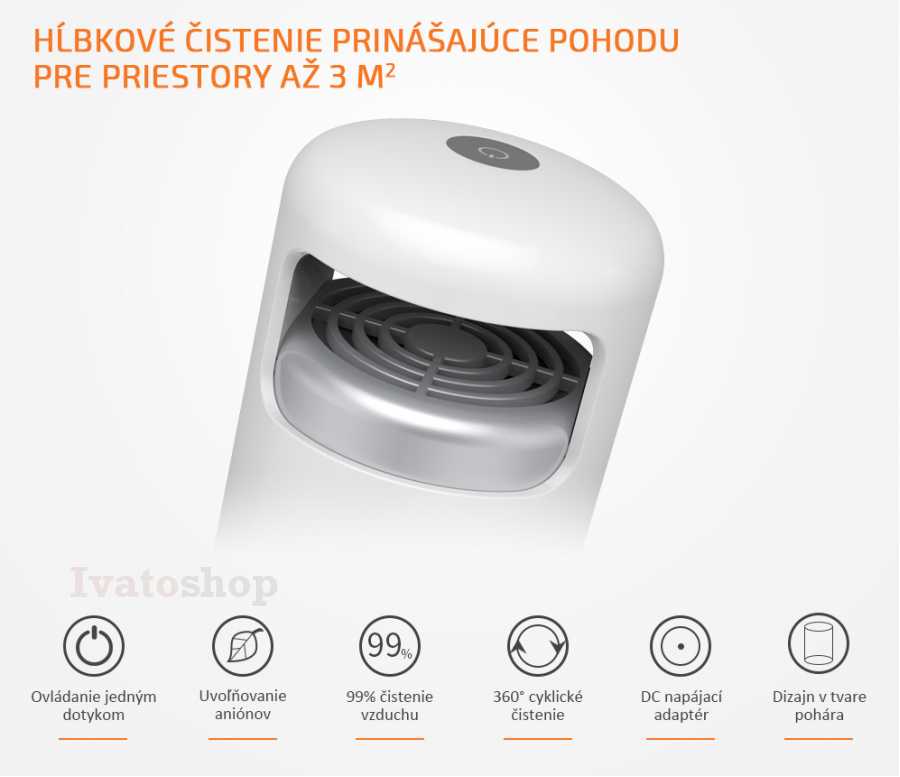 - Ionizátor, 5 miliónov záporných iónov na cm3