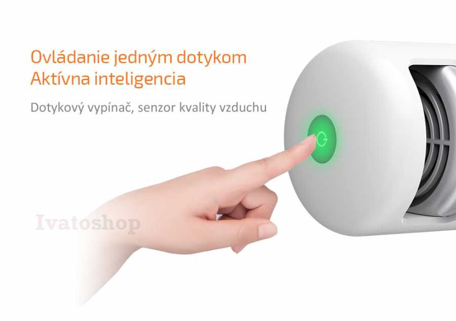 Čistička sa pohodlne ovláda dotykovým vypínačom, ktorý zároveň slúži ako svetelný senzor kvality vzduchu. Farebne indikuje mieru znečistenia vzduchu v aute.