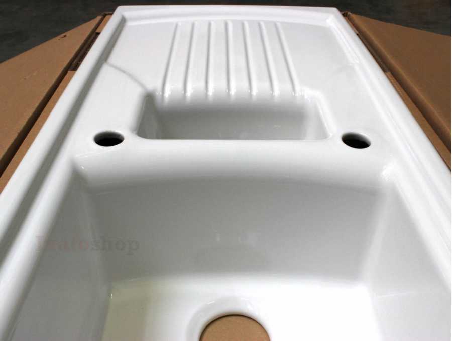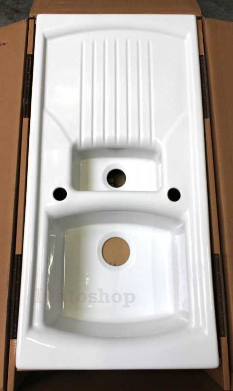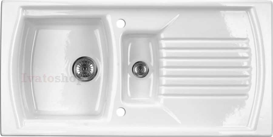 - biely keramický drez s druhou vaničkou a odkvapkávačom