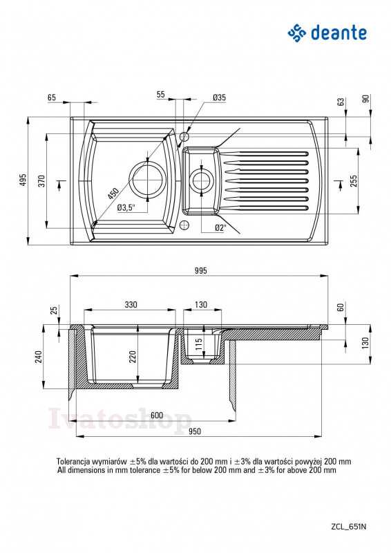 Upozornenie: Vďaka tradičnej výrobnej technológii, odlievaniu drezov do foriem sa môžu rozmery drezu mierne líšiť. Z tohto dôvodu nie je výrobca schopný zaručiť presné rozmery uvedené v technickej špecifikácii. Pri návrhu kuchyne preto počítajte s istou toleranciou, najlepšie pracujte priamo s konkrétnym drezom. Ďakujeme za pochopenie.
