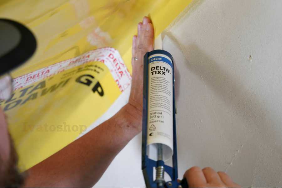 DELTA®-TIXX je možné použiť na vzduchotesné napojenie parotesných zábran fólií z PE, PA, ako aj na ich vzduchotesné spojenie so savými povrchmi ako omietka, betón, drevo a pod. Aplikácia môže byť realizovaná podľa DIN 4108-7 bez prítlačnej lišty / mechanického upevnenia.