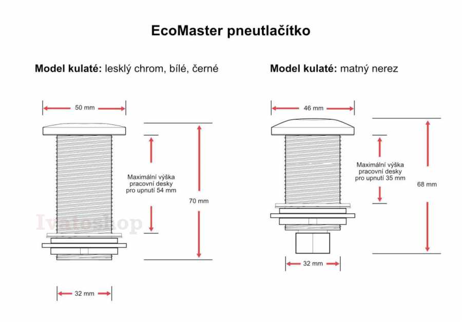 EcoMaster Samostatné pneutlačítko kulaté Matný nerez