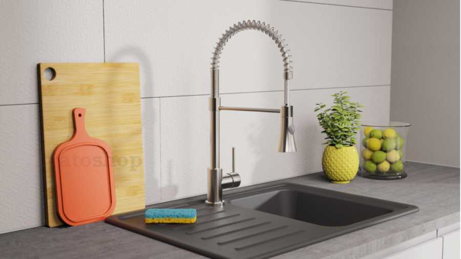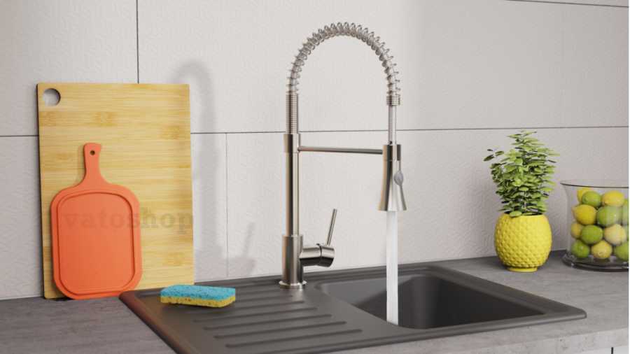 - kuchynská batéria s otočným výtokom o 360 ° C, ideálna pre dvojitý