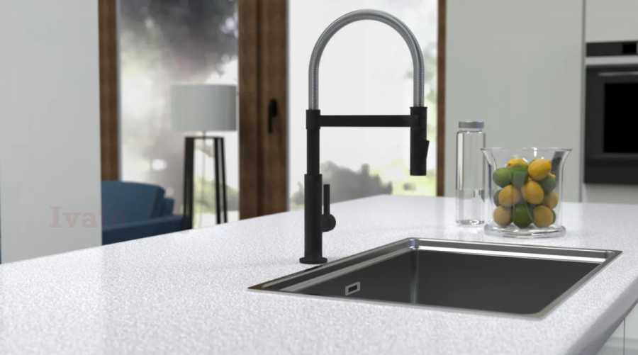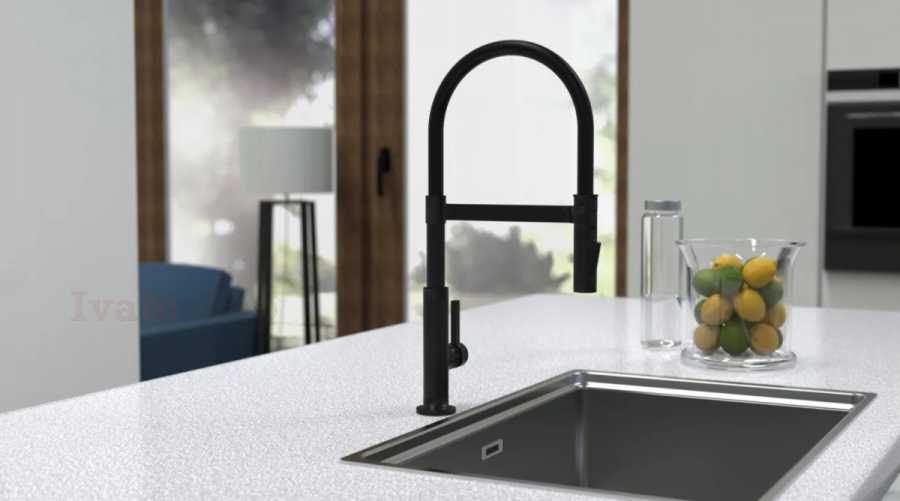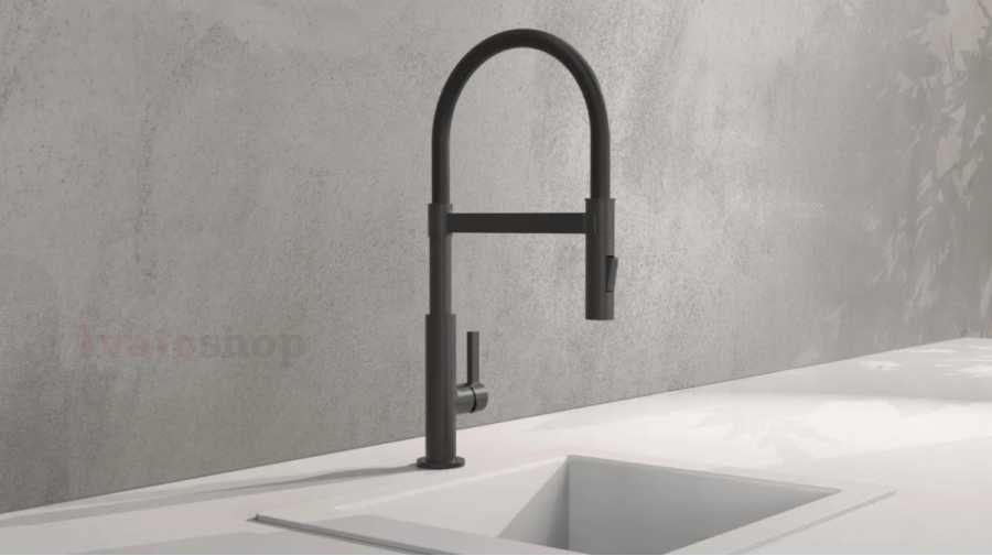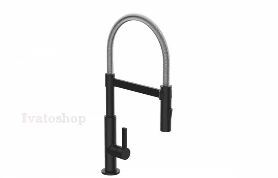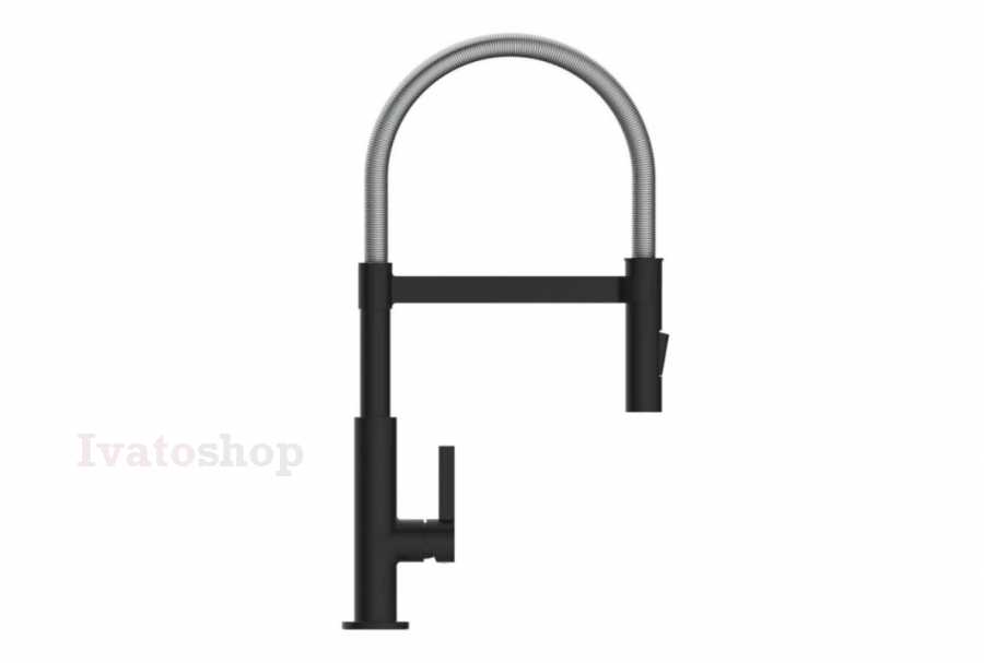 Baterie Miami představuje úspěšné spojení designu a funkce. Vysoce kvalitní výtok se spirálovou pružinou z nerezové oceli s rozprašovačem na nádobí. Černá kuchyňská baterie s výsuvným, dvoucestně nastavitelným sprejem na nádobí pro flexibilní použití. Baterie je vybavena inovativním magnetickým upevněním pro výtok a drží jej ve své poloze.