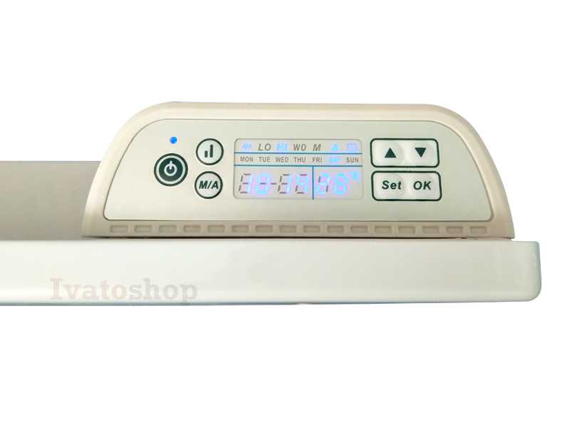 Elektronické ovládanie s LED displejom umiestnené v hornej časti umožňuje nastaviť a používať konvektor v manuálnom režime s 24 hod. časovačom, alebo v automatickom režime s týždňovým programom. V oboch režimoch si nastavíte požadovanú teplotu, ktorú bude konvektor v miestnosti automaticky udržiavať na zvolenej hodnote v rozsahu 5-45 °C. V režime s týždňovým programom je možnosť nastaviť až štyri rôzne časové úseky ohrevu na každý deň v týždni, počas ktorých bude konvektor vykurovať podľa zvolenej teploty. Elektronika je vybavená aj funkciou detskej poistky, ktorej aktiváciou zablokujte tlačidlá na ovládacom paneli. Displej po dokončení nastavenia a pri nečinnosti stmavne