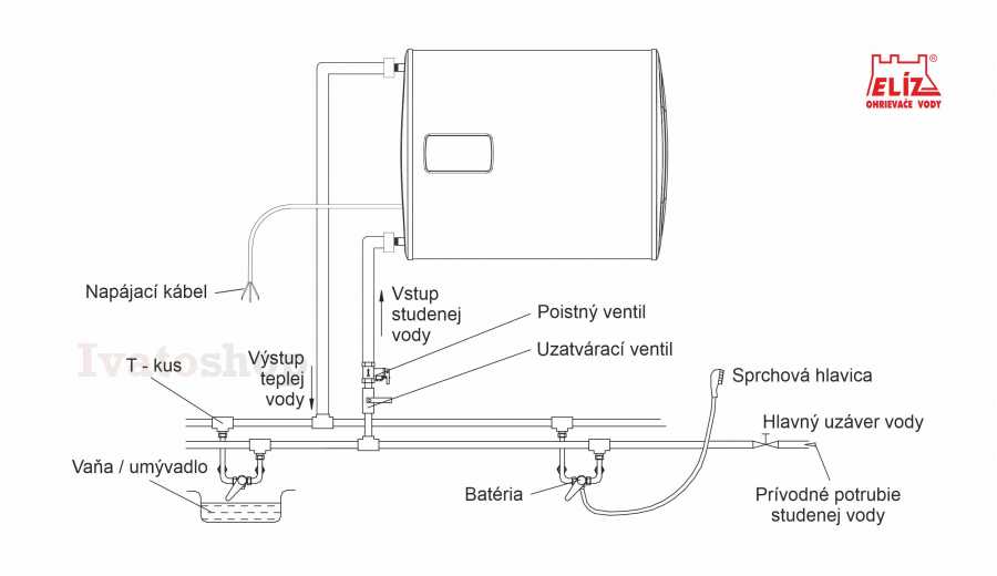 - Závesná konzola a kovový poistný ventil so spätnou klapkou súčasťou ohrievača