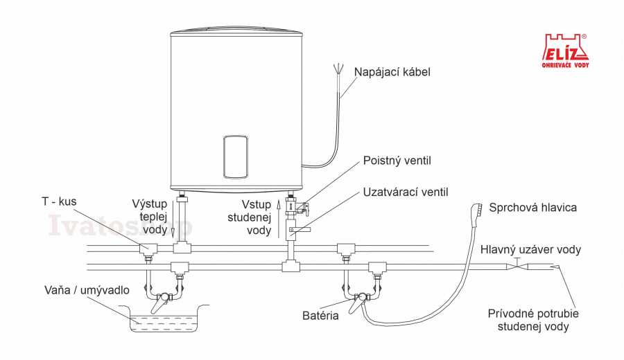 Súčasťou balenia ohrievača sú závesné konzoly na stenu, kovový poistný ventil so spätnou klapkou, napájací kábel a skrutky na uchytenie ohrievača.