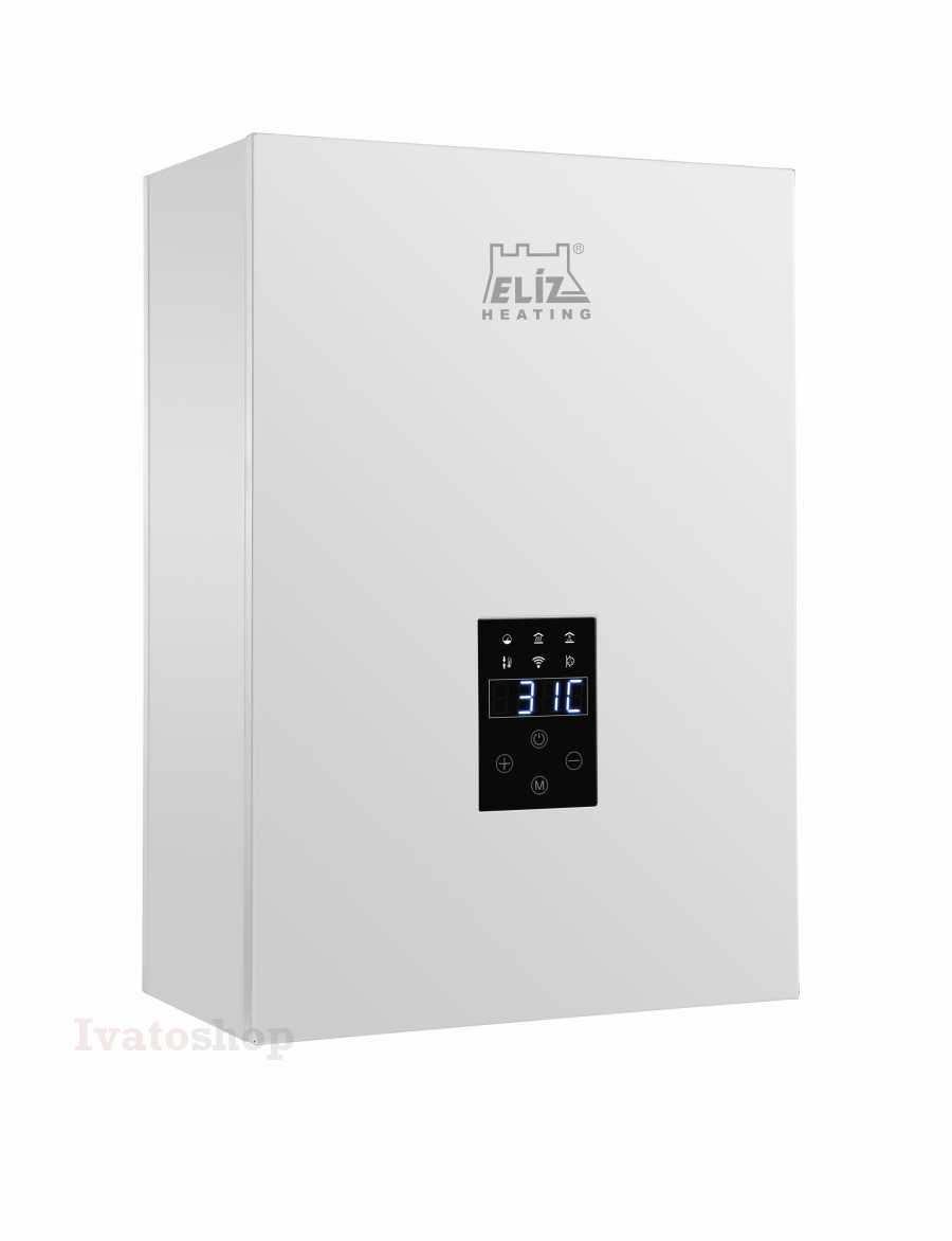 Elektrický nástenný kotol ELÍZ EBO 9 WIFI má výkon 9,5 kW s napojením na 1x230/3x400V. S účinnosťou 98% a prevádzkovou hlučnosťou menej ako 30 dB poskytuje užívateľovi zdravší a energeticky efektívnejší spôsob vykurovania priestorov a prípravy teplej úžitkovej vody (TUV).