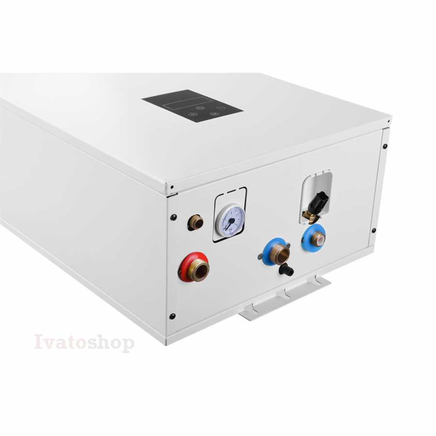 Elektrický kotol EBO má moderný jednoduchý a prehľadný ovládací dotykový panel, ktorý umožňuje nastavovať parametre kotla, teplú vodu a tiež maximálny výkon kotla.