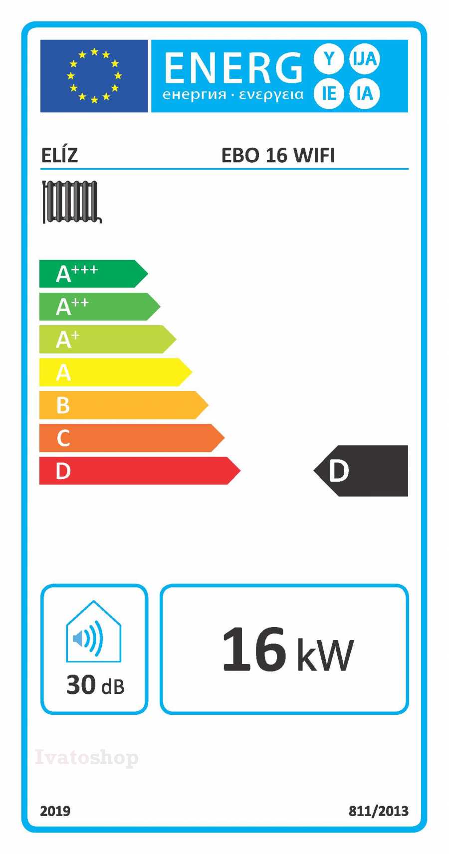 Elektrický nástenný kotol ELÍZ EBO 16 WIFI má výkon 16 kW s napojením na 3x400V. S účinnosťou 98% a prevádzkovou hlučnosťou menej ako 30 dB poskytuje užívateľovi zdravší a energeticky efektívnejší spôsob vykurovania priestorov a prípravy teplej úžitkovej vody (TUV).