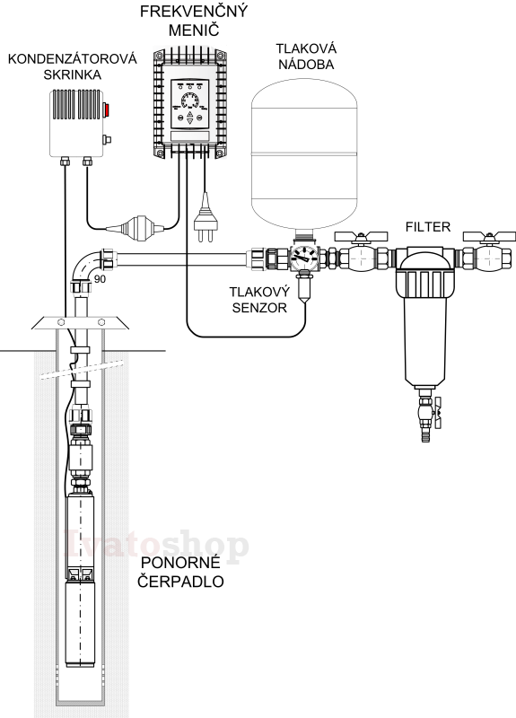 Po otvorení kohútiku, alebo spustení závlahy začne klesať tlak v systéme. Riadiaca jednotka frekvenčného meniča prostredníctvom snímača tlaku vyhodnotí situáciu a spustí čerpadlo. Otáčky čerpadla sú regulované tak aby bol udržovaný konštantný tlak v systéme aj pri meniacom sa odbere.
