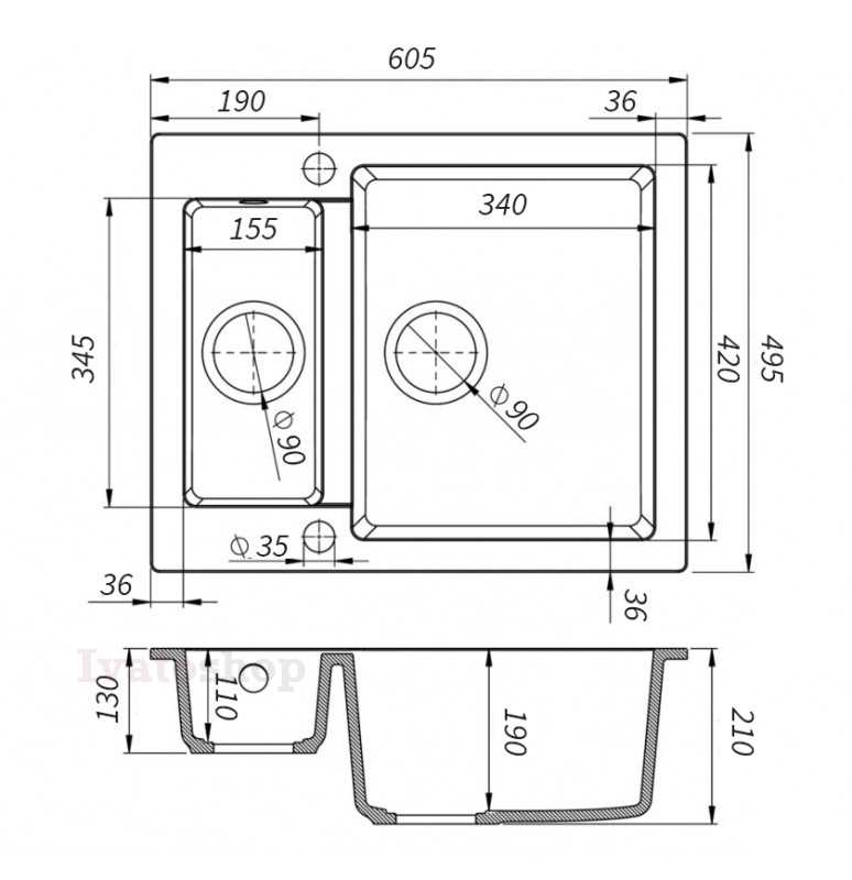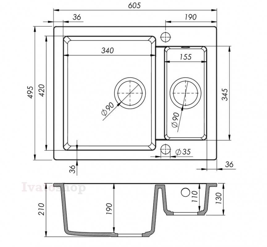Drez Fabero 605.2 ponúka dve umývacie komory: druhá, plytšia komora nielen uľahčuje odtok vody, ale je tiež ideálny na umývanie ovocia a zeleniny alebo na rozmrazenie mäsa prípadne na sušenie príborov. V menšej komore nájdete prepad, ktorý bráni pred prípadným pretečením vody. Do drezu Fabero 605.2 je možné vytvoriť otvory pre inštaláciu kuchynskej batérie, zapusteného dávkovača saponátu alebo pre tlačidlo ovládania drviča kuchynského odpadu.