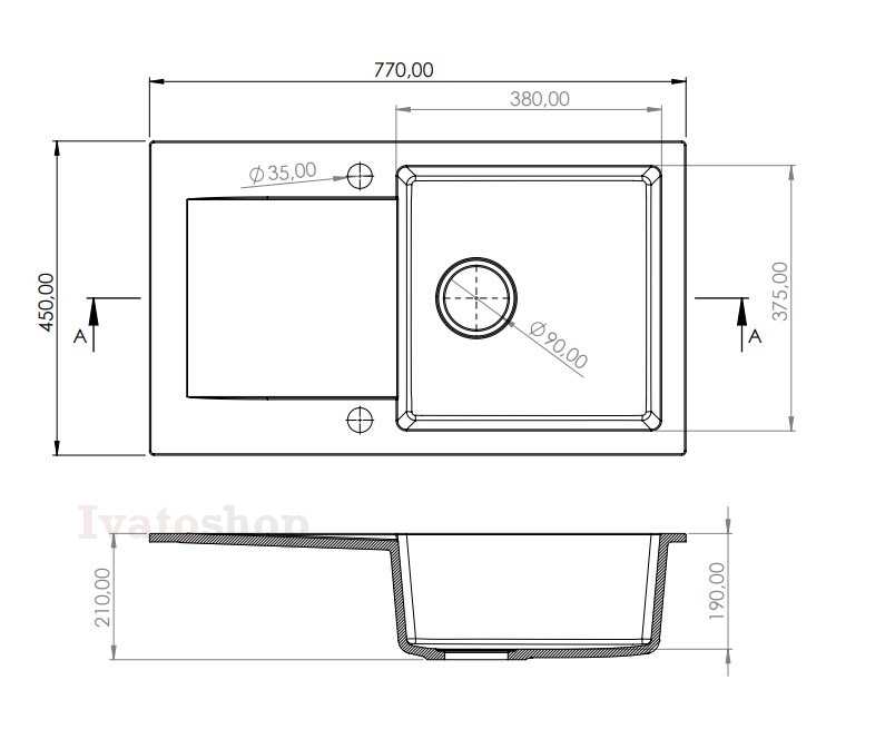 Do drezu Fabero 770.0 je možné vytvoriť otvory pre inštaláciu kuchynskej batérie, zapusteného dávkovača saponátu alebo pre tlačidlo ovládania drviča kuchynského odpadu. Okrem toho má drez prepad, ktorý chráni drez pred prípadným pretečením.