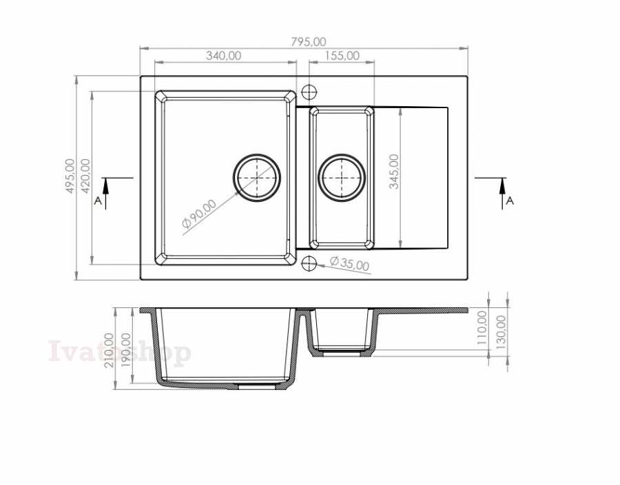 Drez Fabero 795.15 splní všetky vaše očakávania. Dostatočne hlboká (19 cm) hlavná komora drezu umožňuje pohodlné umývanie a oplachovanie tanierov aj hrncov. Na špeciálne úkony slúži druhá menšia komora , v ktorej môžete ľahko opláchnuť ovocie a zeleninu alebo nechať rozmraziť mäso. Zároveň drez disponuje odkladacou plochou, kde môžete dať osušiť jednotlivé riady. Do drezu je možné vyvŕtať otvory na inštaláciu kuchynskej batérie, alebo pre dávkovač saponátu popr. pre tlačidlo na ovládanie drviča kuchynského odpadu.