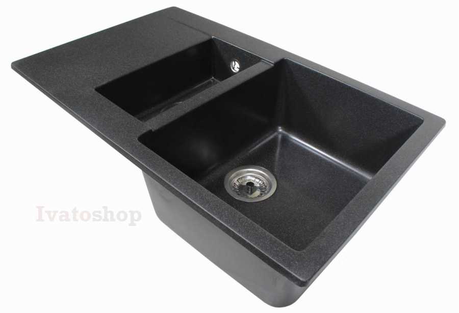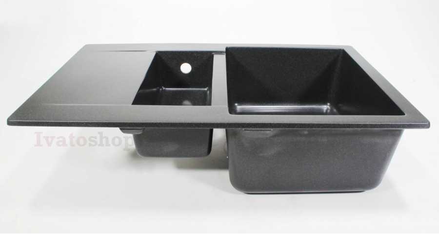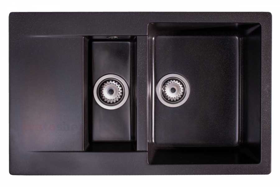 - žulový kuchynský drez v čiernej farbe s odkvapom a druhou menšou vaničkou