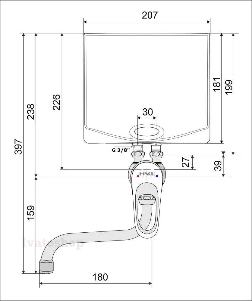 Pre jednoduchší nákup je el. prietokový ohrievač vody HAKL MK SET dodávaný spolu s vodovodnou beztlakovou nástennou drezovou pákovou batériou HAKL, s dĺžkou výtokového ramienka 18 cm.
