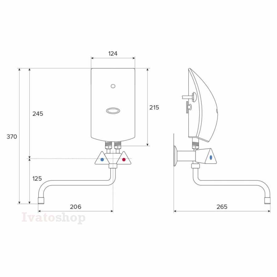- IconicLine - elektrický prietokový ohrievač vody s hydraulickým spínaním, beztlakovou prevádzkou a vodovodná beztlaková nástenná klasická batéria HAKL, výtokové ramienko 20 cm