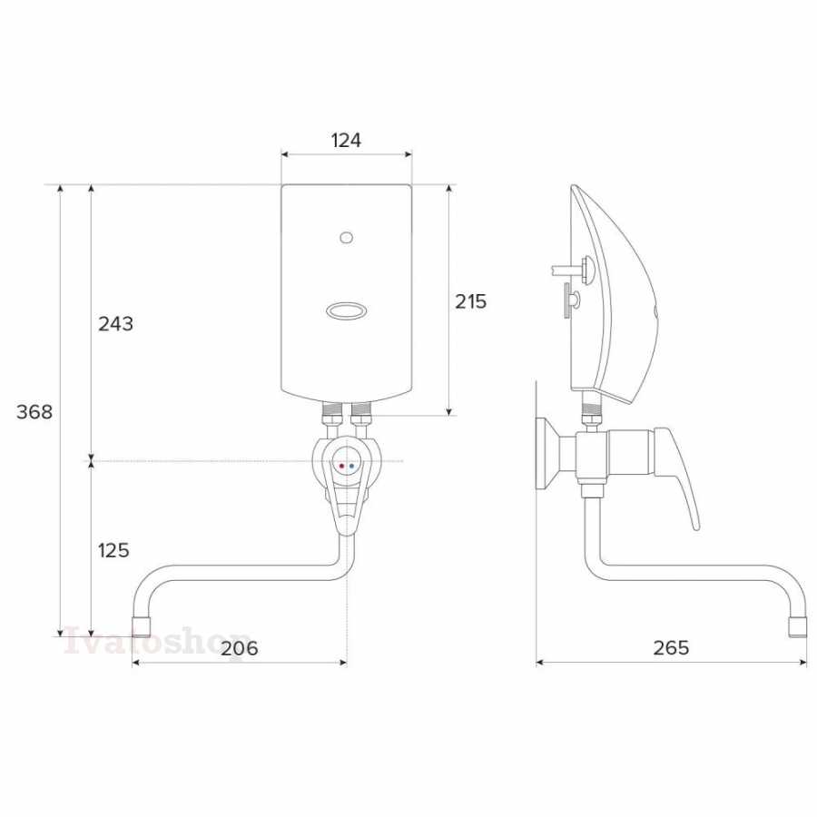 - Elektrický prietokový ohrievač vody s hydraulickým spínaním, beztlakovou prevádzkou a vodovodná beztlaková nástenná drezová páková batéria HAKL, výtokové ramienko 18 cm