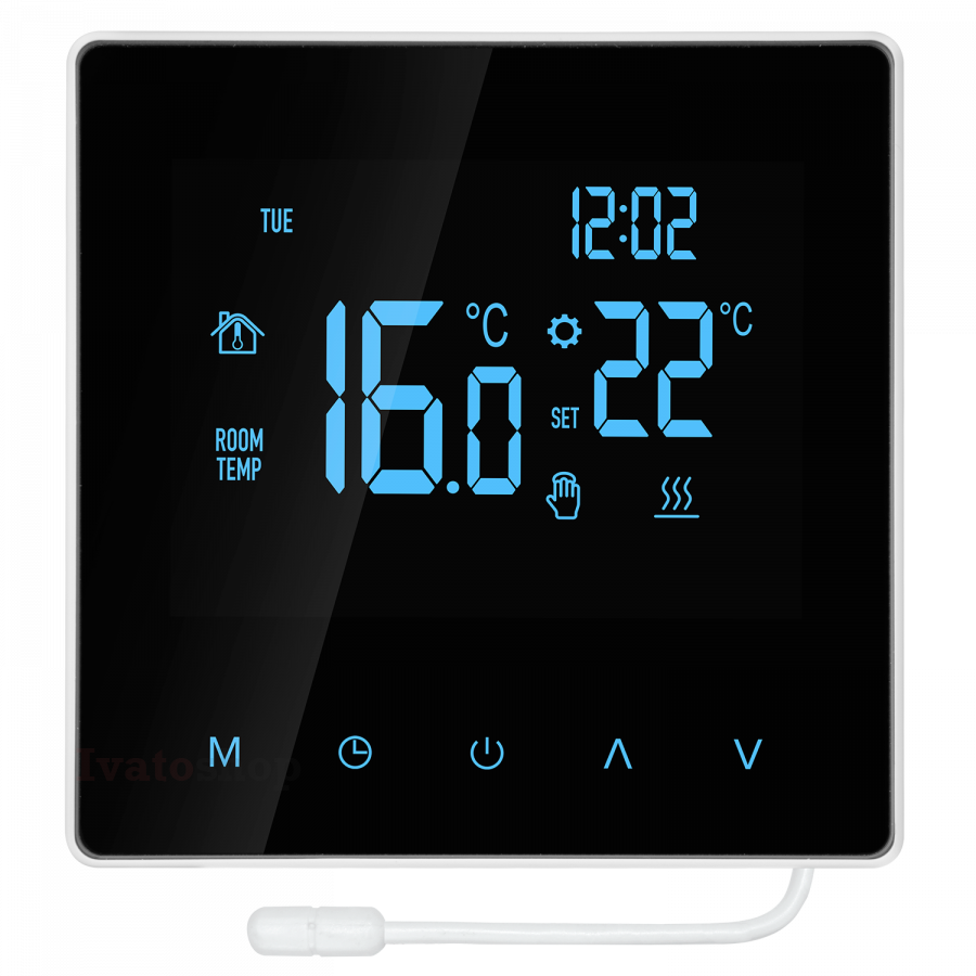 Digitálny termostat s dotykovým ovládaním, s pokročilým nastavením a predĺženým snímačom s dĺžkou 3m.