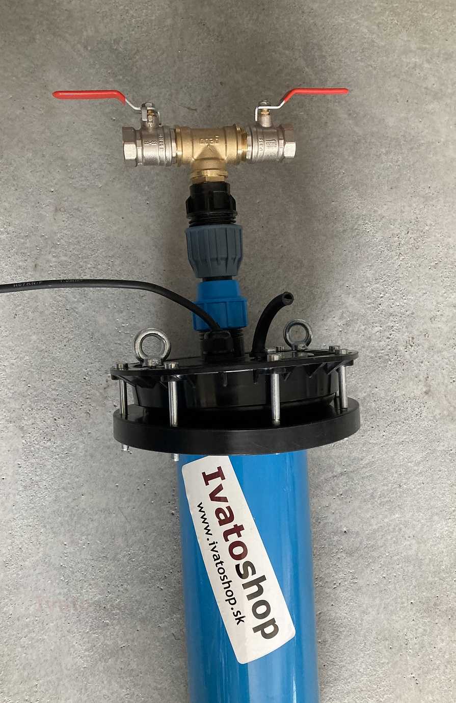 Hlavica sa inštaluje na potrubie s vonkajším priemerom 160mm a má prechod na výtlačnú hadicu 5/4" (cól)