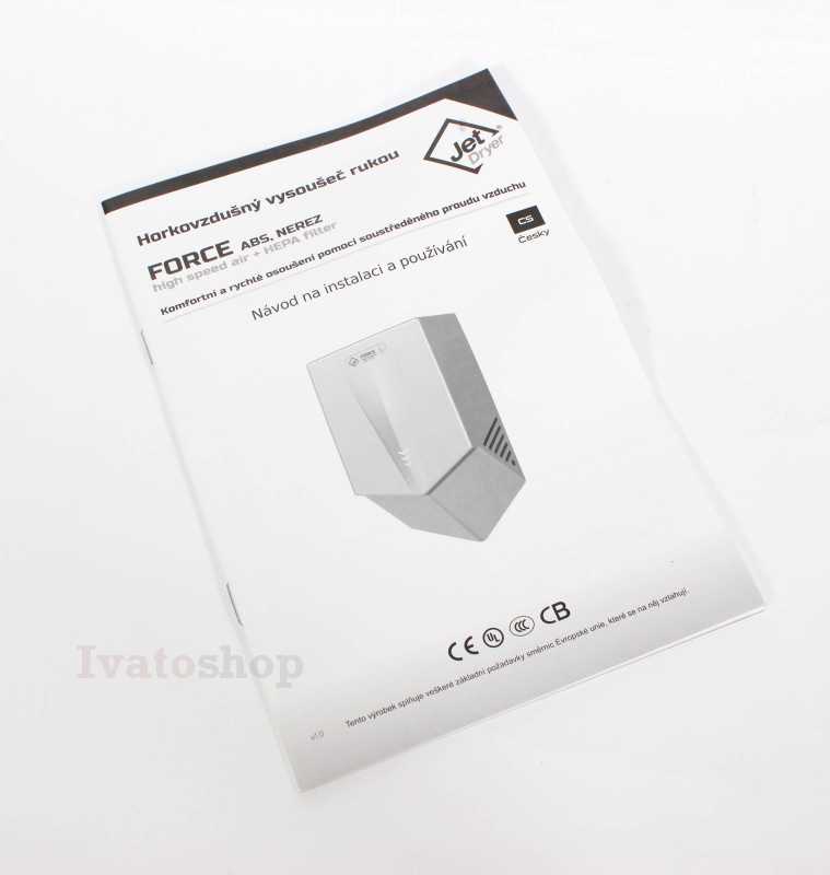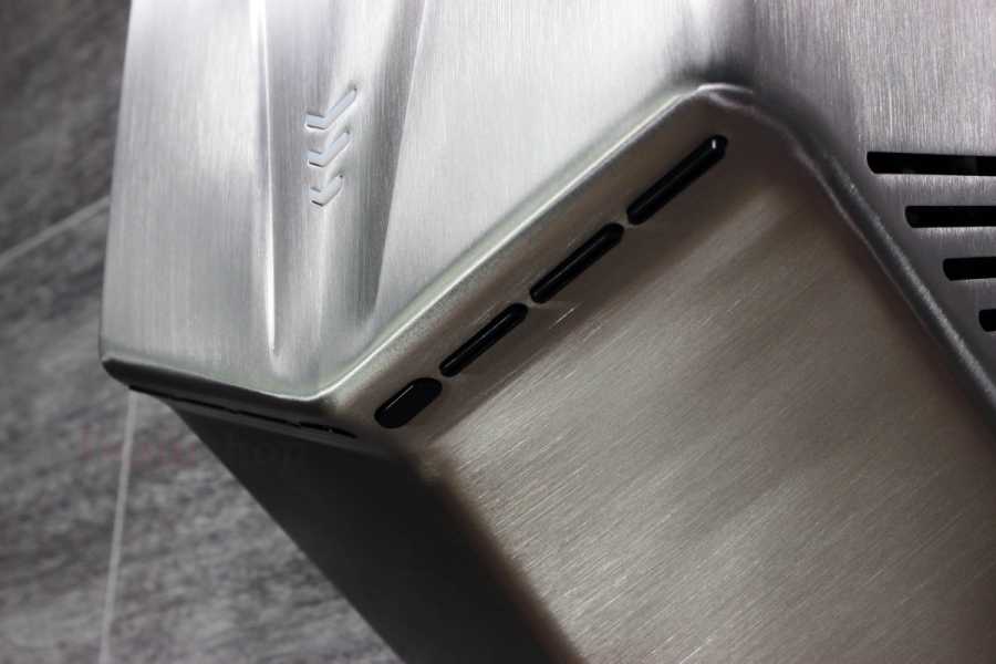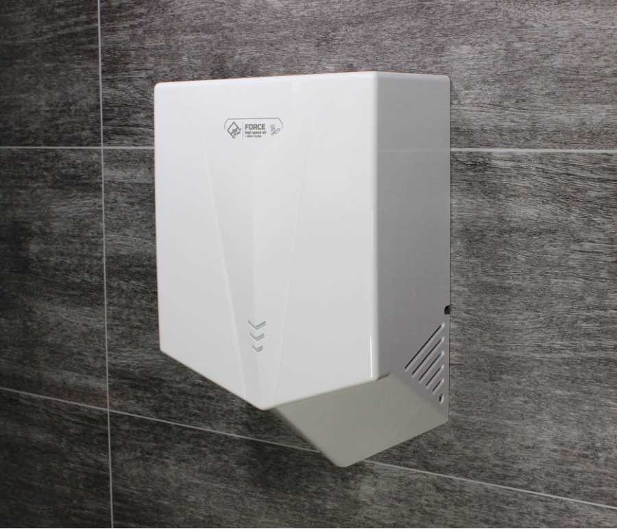 Jet Dryer FORCE je k dispozici ve variantě s kartáčovaným nerezovým povrchem nebo odolným bílým nebo černým ABS plastem. Je tak vhodný i do prostředí, kde je zvýšené riziko vandalismu nebo hrubšího zacházení. Kryt z nerezové oceli třídy 304 zaručuje dlouhou životnost a snadnou údržbu.