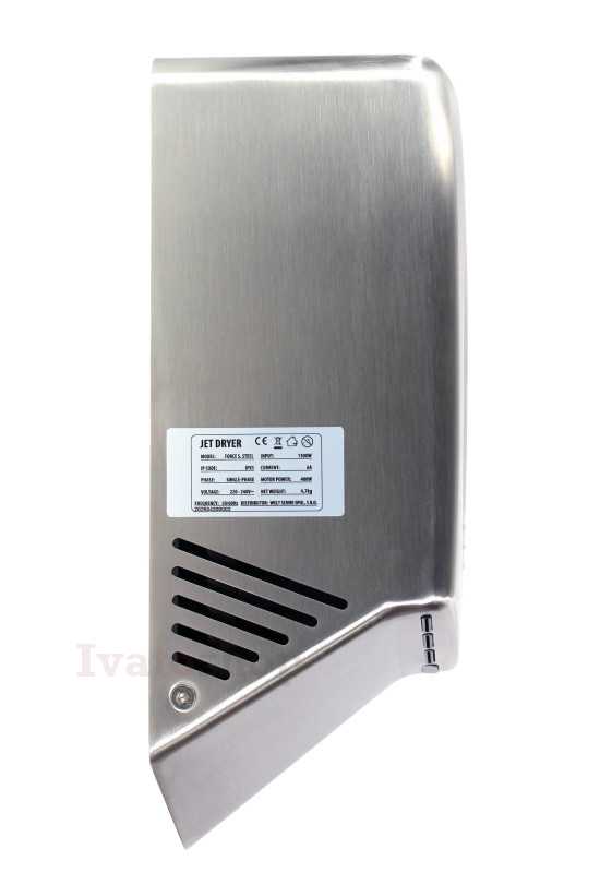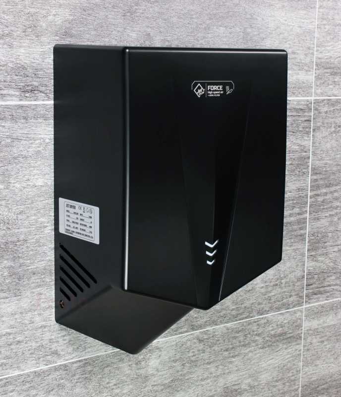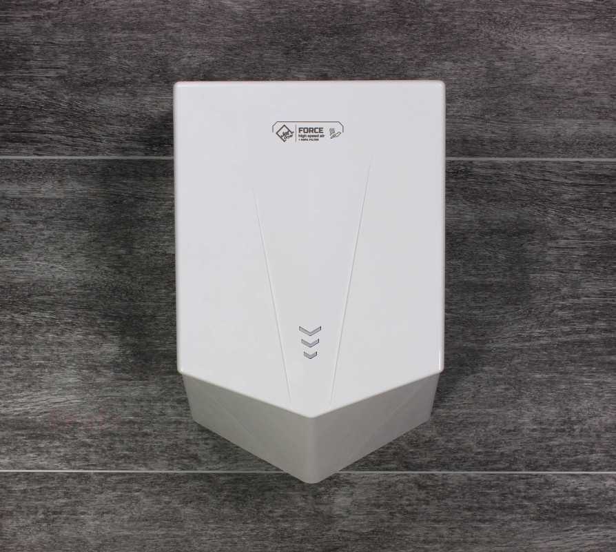 Jet Dryer FORCE dosahuje rychlosti vzduchu až 150 m/s, což zajišťuje rychlé vysušení rukou do 15 sekund. Přes svůj výkon si zachovává nízkou hlučnost a pohodlné používání. Rychlost vzduchu je optimalizovaná tak, aby nedocházelo k nepříjemnému pocitu na pokožce, a zároveň poskytuje maximální efektivitu.