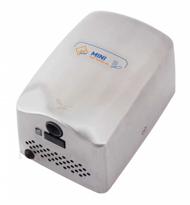 Provoz osoušeče MINI je zcela bezkontaktní. K sepnutí přístroje dojde okamžitě po přiblížení rukou k přístroji. Povrch z leštěného nerezu má zaoblené hrany pro snadnou údržbu.