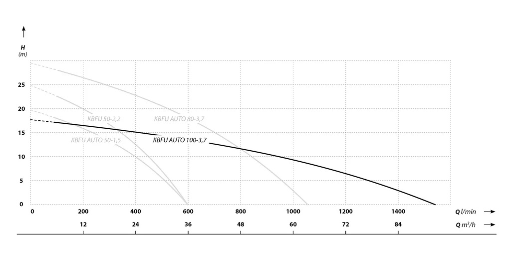 Ponorné čerpadlá série KBFU AUTO sú určené pre profesionálne odvodňovacie aplikácie a všade tam, kde existuje riziko čerpanej vody obsahujúcej piesok, bentonit, kal alebo abrazívne častice. Tieto čerpadlá, navrhnuté na základe série KBFU, sú vybavené riadiacou a monitorovacou jednotkou a externým miešadlom, ktoré predĺžujú životnosť čerpadla v náročných prostrediach. Čerpadlá sa vyznačujú odolnou a robustnou konštrukciou. Vďaka automatickému riadeniu sú čerpadlá počas prevádzky prakticky bezúdržbové a majú rad bezpečnostných prvkov. Vďaka chladiacemu plášťu môžu pracovať iba čiastočne ponorené. Na zaistenie tesnosti sa používa dvojité mechanické tesnenie.