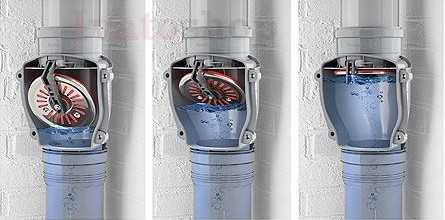 Zvislá kanalizačná spätná klapka zabraňuje spätnému chodu splaškov späť do potrubia. Funguje na princípe plavákového privretia pomocou hladiny vody, vďaka čomu sa pri spätnom chode vody uzavrie. Ovladač (otvor/zatvor) sa využíva len v prípade "havárie". Po jeho zaistením voda nepreteká v žiadnom smere. V prípade zanesenia je možné ju vyčistiť odskrutkovaním v hornej časti klapky a odobratím krytu. Táto spätná klapka môže byť montovaná len vertikálne.