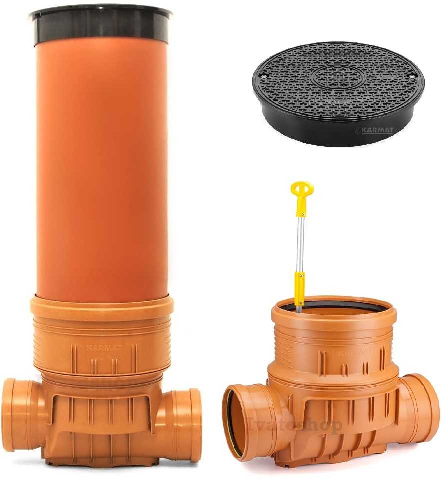 Šachtové dno KARMAT so spätnou klapkou je určené na napojenie z budov do hlavnej kanalizácie. Slúži k zabráneniu spätného chodu splaškov a pachov späť do potrubia a vniknutiu hlodavcov do systému. Klapka môže byť použitá aj ako revízna šachta, je vybavená teleskopickým systémom uzáveru. Revízna šachta je odporúčaná na trase kanalizácie každých 20 - 25m.
