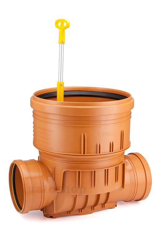Šachtové dno KARMAT so spätnou klapkou je určené na napojenie z budov do hlavnej kanalizácie. Slúži k zabráneniu spätného chodu splaškov a pachov späť do potrubia a vniknutiu hlodavcov do systému. Klapka môže byť použitá aj ako revízna šachta, je vybavená teleskopickým systémom uzáveru. Revízna šachta je odporúčaná na trase kanalizácie každých 20 - 25m.