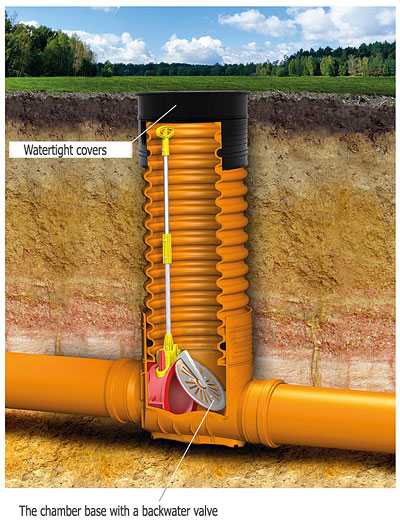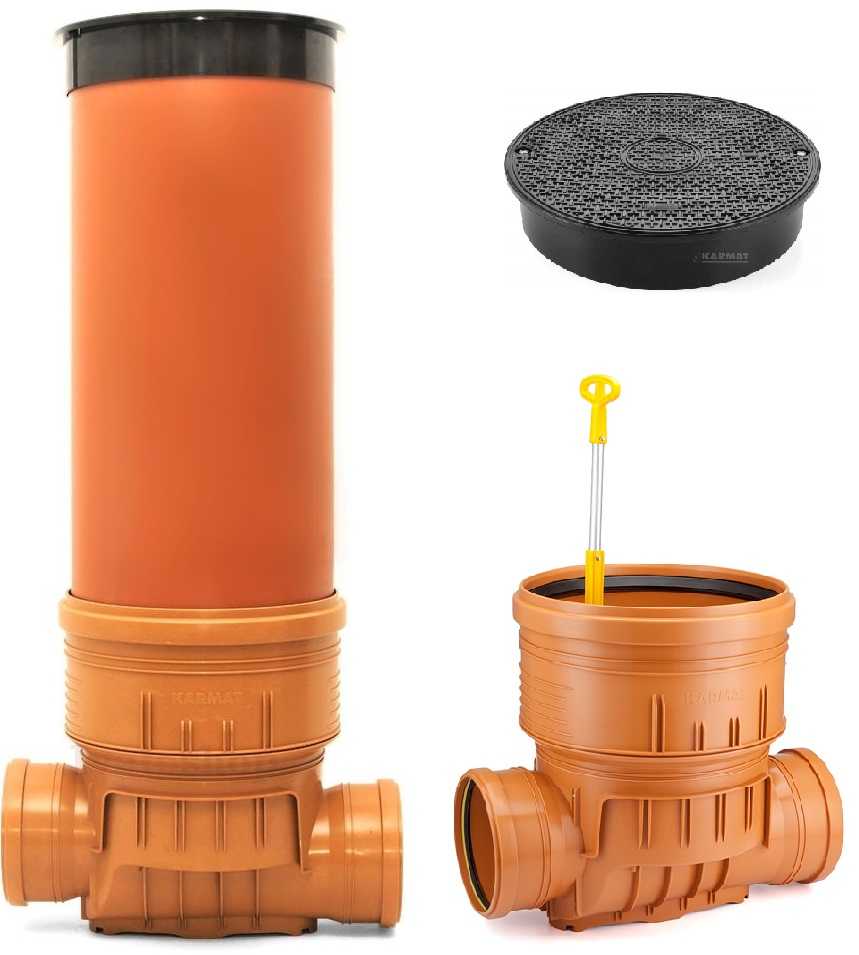 Šachtové dno KARMAT so spätnou klapkou je určené na napojenie z budov do hlavnej kanalizácie. Slúži k zabráneniu spätného chodu splaškov a pachov späť do potrubia a vniknutiu hlodavcov do systému. Klapka môže byť použitá aj ako revízna šachta, je vybavená teleskopickým systémom uzáveru. Revízna šachta je odporúčaná na trase kanalizácie každých 20 - 25m.