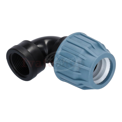 Vodárenske PP koleno na PE potrubie s vnútorným závitom, pre tlakovú normu PN16.