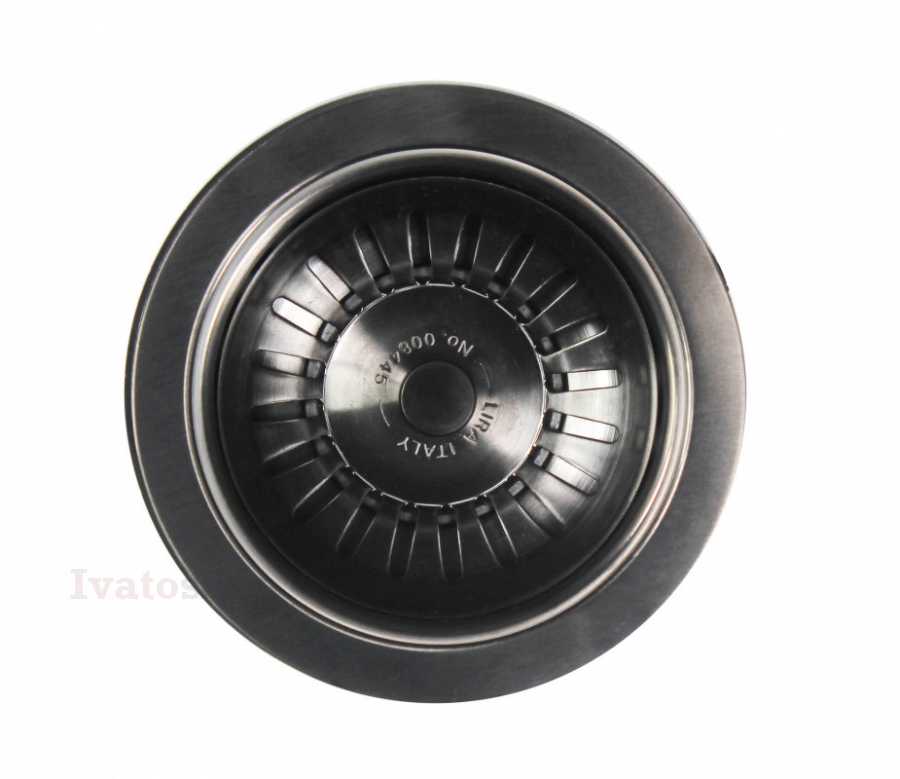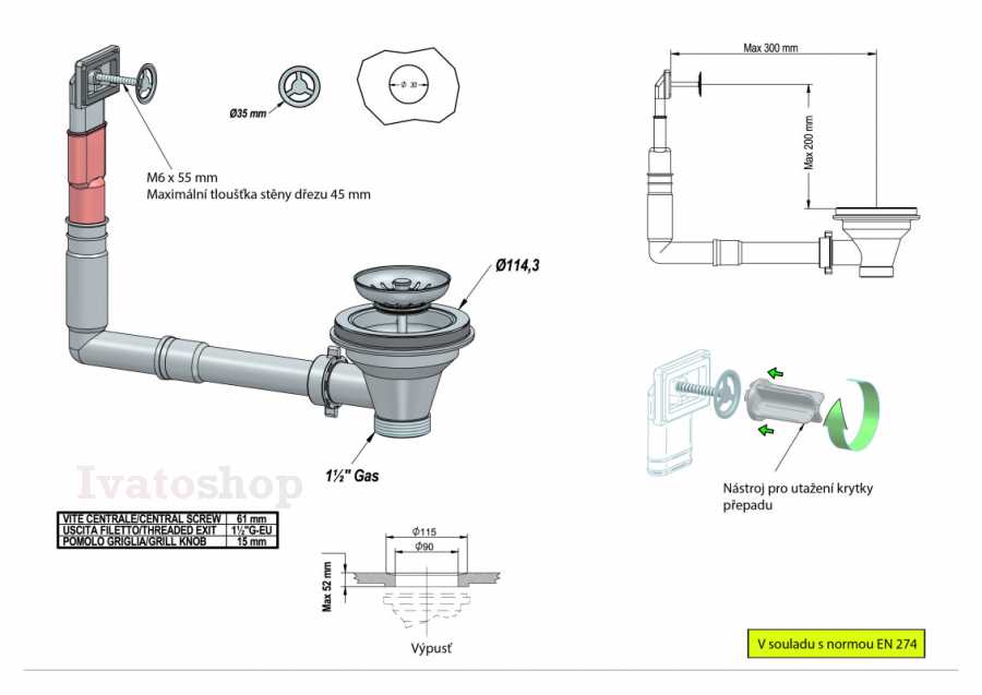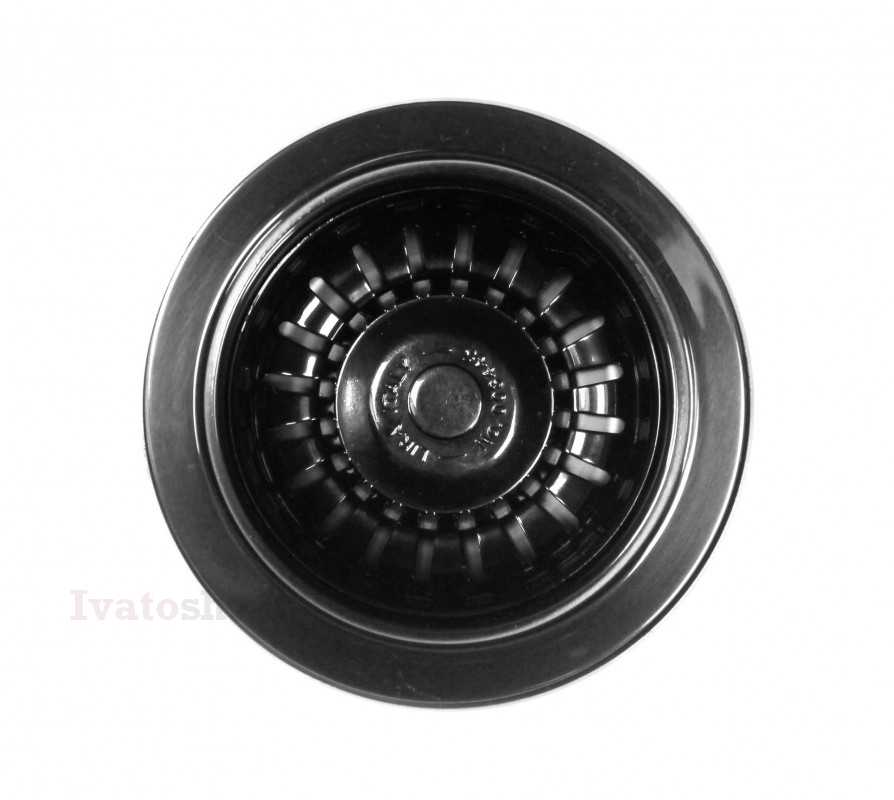 Mosazná dřezová výpusť se manuálně ovládá pomocí středového tlačítka. Při zatlačení uzavírá odtok, při povytažení plní funkci sítka (které lze celé vyjmout).