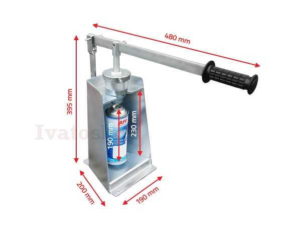 Zariadenie určené na ručné plnenie 400 ml sprejových plechoviek s maximálnym objemom 100 ml laku.