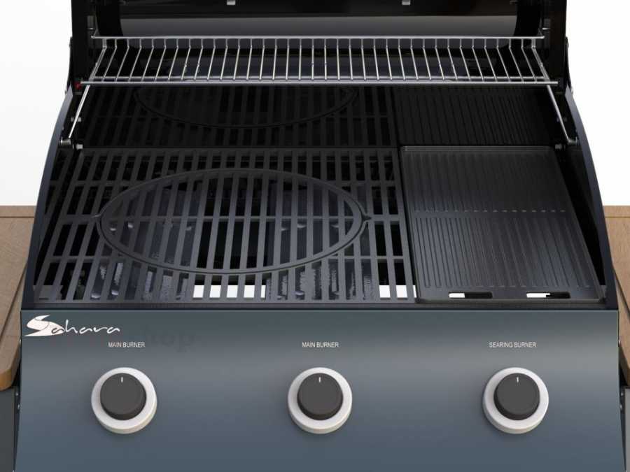 Propán-butánový gril s bambusovými výsuvnými bočnými táckami.