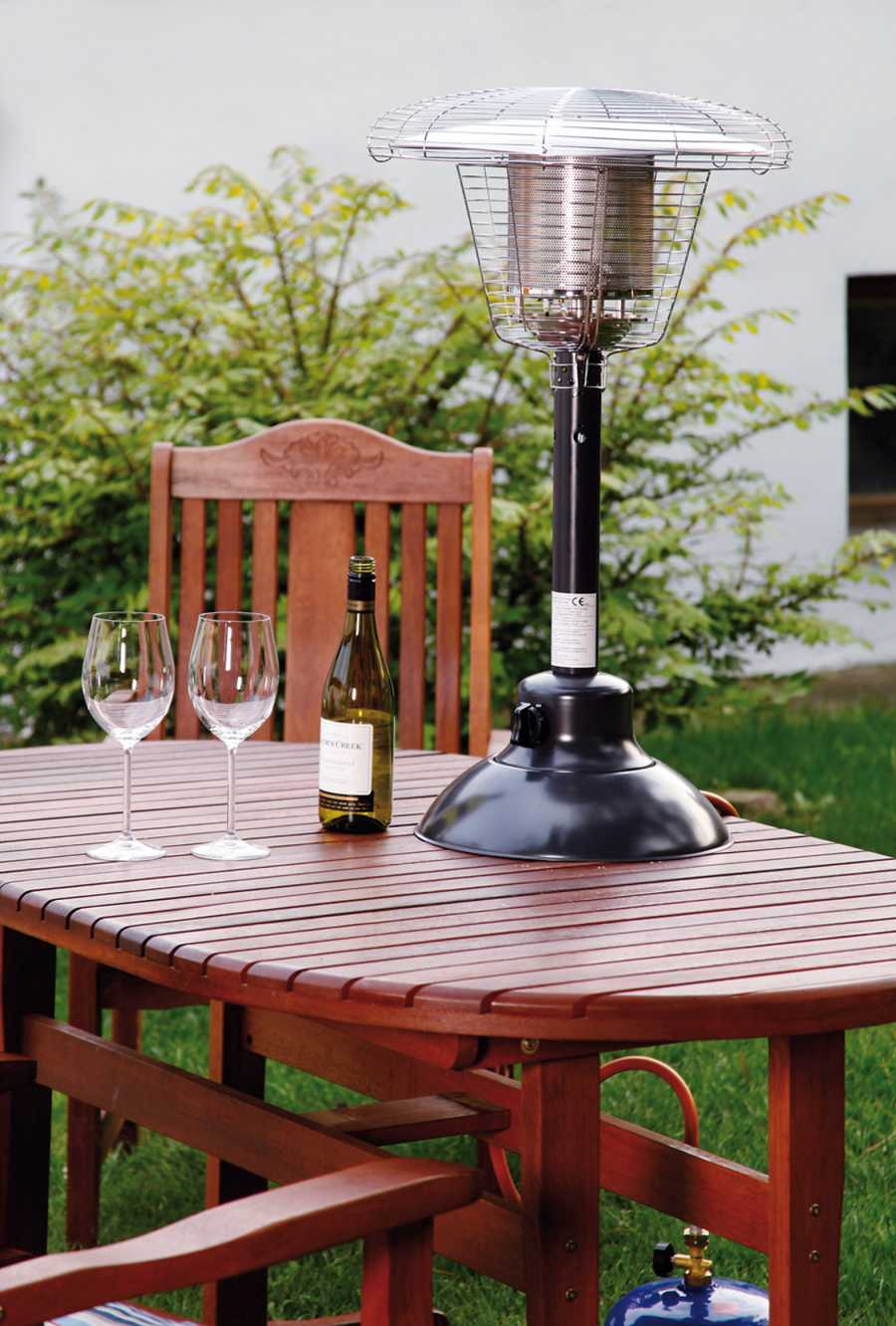 Výkonné, stolové záhradné vykurovacie teleso, ideálne nie len pre letné večery. Distribuuje teplo až na 3 metre v priemere.