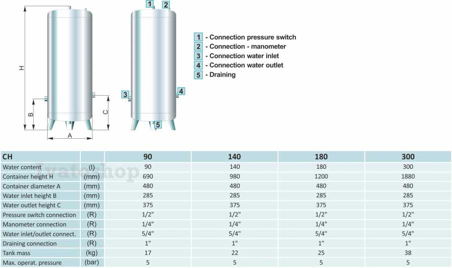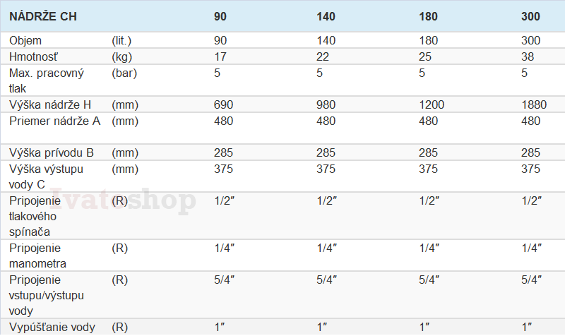 Tlakové nádoby v spojení s ponornými, alebo povrchovými čerpadlami umožňujú zvýšenie tlaku v systéme pre rozvod vody domov, fariem, záhrad, alebo v priemysle . Použitie tlakových nádob zároveň stabilizuje tlak vody v systéme čo zvyšuje životnosť celého systému zásobovaného vodou, no v prvom rade životnosť čerpadiel. Tlaková nádoba je bez gumového vaku. Materiálové vyhotovenie je z kvalitnej nerezovej ocele. Tieto nádoby je možné použiť aj tam, kde je predpokladaný styk s pitnou vodou. Sú vhodné aj ako súčasť domácich vodární, ako expanzné nádoby k vykurovacím systémom, bojlerom, ohrievačom vody a pod. Prevádzkové teploty sú v rozsahu od -10°C do +70°C. Nádoba má vnútorné závity na pripojenie do systému. Celonerezové prevedenie je zárukou vysokej životnosti a spoľahlivosti. Nádoba má platný certifikát.