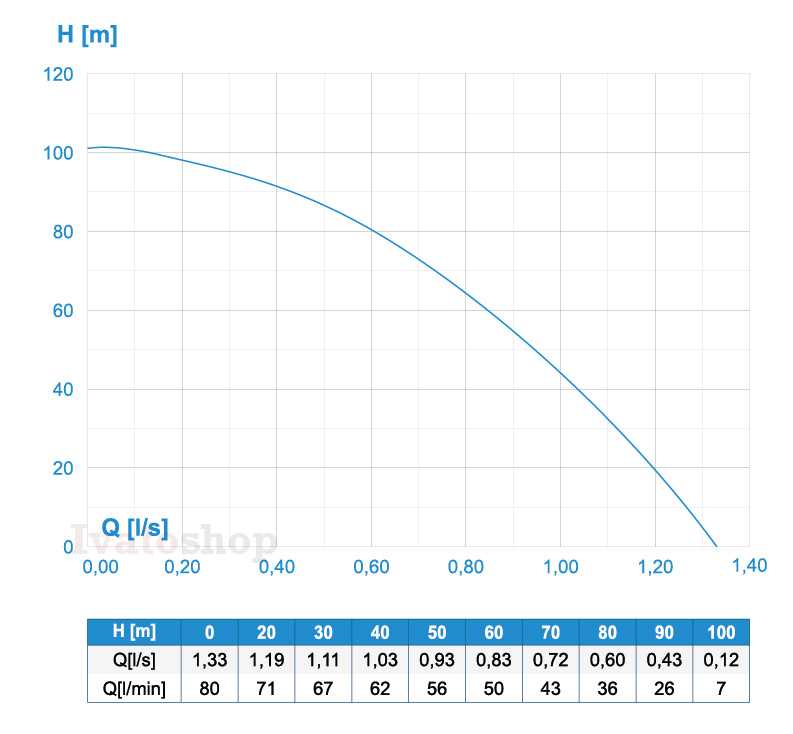 Q max.: 70 l/min H max.: 130 m Max. ponor: 60 m Priemer čerpadla 95 mm