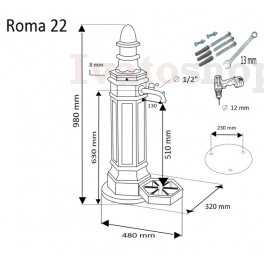 Záhradná studňa ROMA je estetické a funkčné riešenie pre zásobovanie vodou vo vašej záhrade. Konštrukcia záhradnej studne ju umožňuje umiestniť vo voľnom priestore záhrady, ale aj na terasách, altánkoch, či letných záhradách. Zhotovenie studne z hliníkovej zliatiny a kvalitná povrchová úprava zaručujú mimoriadnu odolnosť voči poveternostným vplyvom a korózii. Súčasťou studne je aj zberná nádobka a ventil na vodu. Ozdobnú studňu odporúčame pripevniť k podlahe.