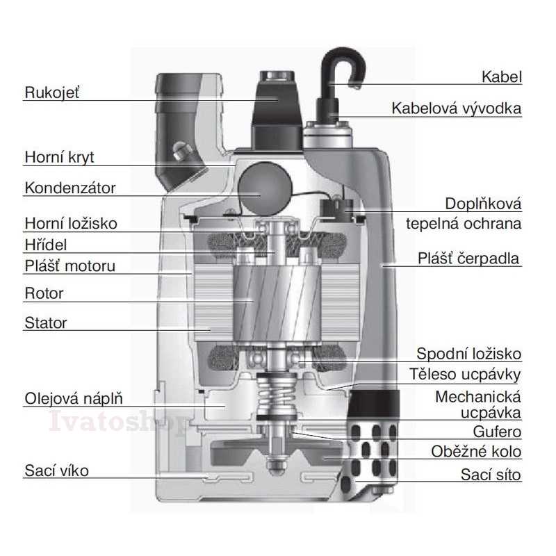 Čerpadlá sú vybavené dvojitou mechanickou upchávkou z karbidu kremíka, epoxidom zaliatou káblovou vývodkou odolnou proti presiaknutiu vody v prípade poškodenia káblu, vodotesným plášťom motora a havaríjnou doplnkovou tepelnou ochranou elektromotora.