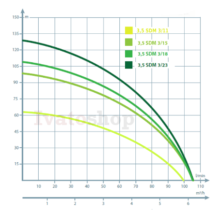 Viacstupňové hlbinné čerpadlo 3,5" SDM3-23 sa vyznačuje zvýšenou odolnosťou voči abrazívnym látkam. Vďaka plávajúcim obežným kolesám a použitím odolných materiálov pri výrobe, je vhodné aj do čerstvých vrtov a studní, pre zásobovanie rodinných domov, fariem, priemyselných objektov, zavlažovanie záhrad a pod., alebo ako súčasť domácej vodárne s ponorným čerpadlom. Čerpadlo je vybavené tepelnou ochranou. Vysoká účinnosť a hospodárnosť prevádzky vzhľadom k priemeru čerpadla umožňuje široké využitie.