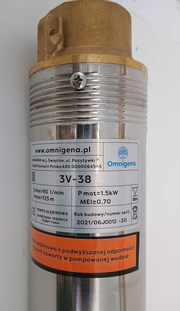 Ponorné čerpadlá pre vŕtané studne Omnigena 3V” sú zariadenia vhodné na inštaláciu aj do úzkych studní s minimálnym vnútorným priemerom 85 mm. Sú určené na čerpanie čistej, studenej vody, s obsahom pevných častíc do 5% / m³